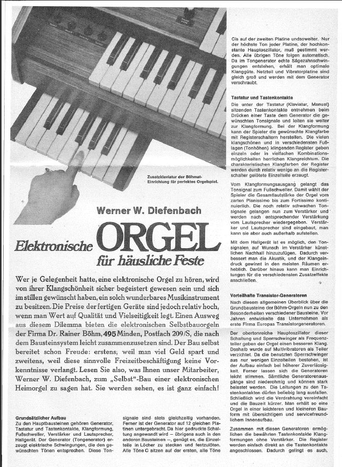 • analoge Tonerzeugung, ab ca. 1965 Wechsel von Röhrentechnik auf Transistortechnik